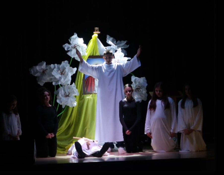 Uczniowie Szkoły Podstawowej w Jasienicy Rosielnej zaprezentowali program artystyczny nawiązujący do życia i nauczania Papieża Polaka. Poruszająca pantomima, podczas której przejmująca narracja towarzyszyła scenom przedstawiającym najważniejsze momenty z życia i pontyfikatu Świętego Jana Pawła II na długo pozostanie w sercach zgromadzonej na sali publiczności.
