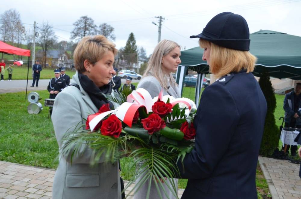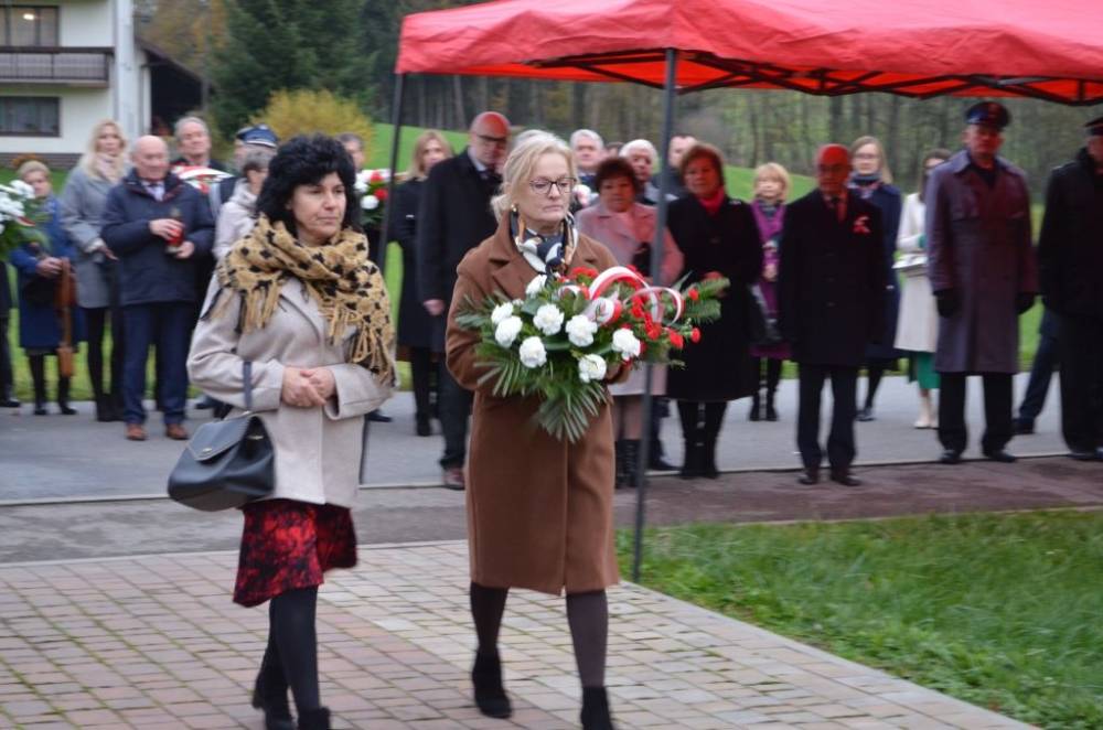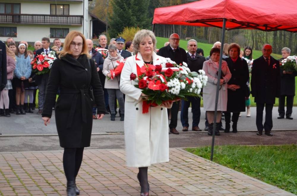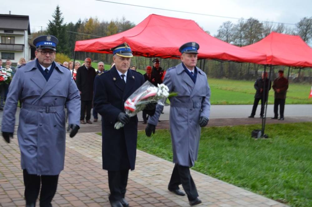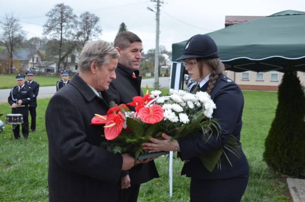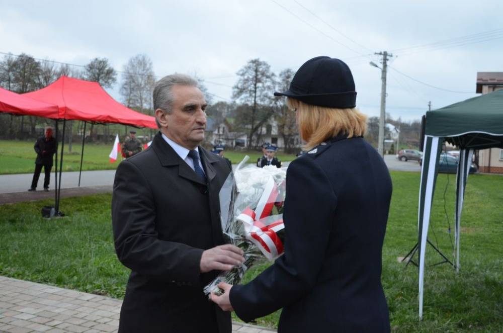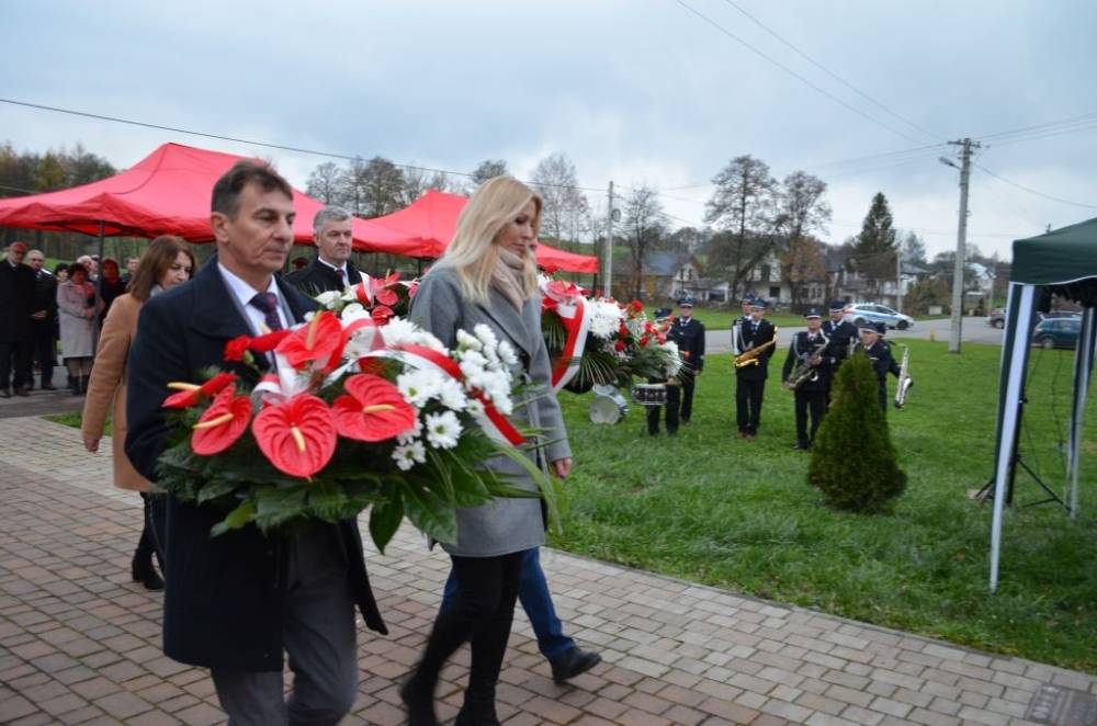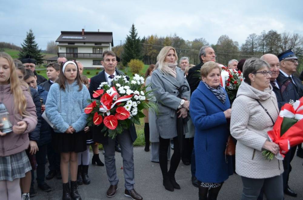 Słów o miłości Ojczyzny nie zabrakło również podczas drugiej części uroczystości. Uczestnicy przeszli bowiem ze świątyni do pomnika wystawionego w stulecie odzyskania niepodległości, prowadzeni przez orkiestrę dętą, poczty sztandarowe i pododdział honorowy pod dowództwem dh. Henryka Leśniaka. Tam byli świadkami podniesienia flagi państwowej, a także wysłuchali przemówienia wójta gminy Urszuli Brzuszek, która nie kryjąc podniosłych emocji, wskazała na potrzebę pełnej roztropności i zaangażowania postawy służby Ojczyźnie i narodowi szczególnie w obecnej rzeczywistości. Podobną refleksją podzielił się z zebranymi poseł Adam Śnieżek oraz nieobecny poseł Piotr Uruski, którego okolicznościowe pismo zostało zacytowane. Zgodnie z tradycją przy pomniku kwiaty złożyły delegacje reprezentujące lokalnych parlamentarzystów i samorządowców, a także służby mundurowe, placówki oświaty, kultury, pomocy społecznej, inne jednostki gminne, organizacje pozarządowe oraz potomkowie miejscowych bohaterów.