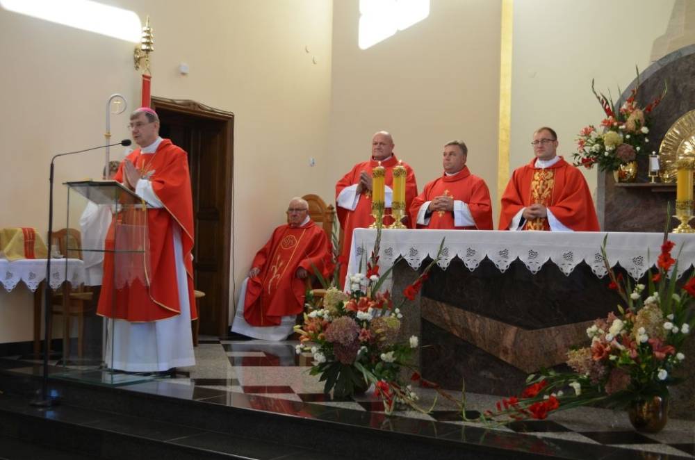 Jubileuszowe świętowanie rozpoczęła Eucharystia w miejscowym kościele, którą koncelebrowali: bp Krzysztof Chudzio, ks. kan. Marek Zarzyczny, ks. kan. Władysław Kordas i ks. prob. Mirosław Mateja i ks. wik. Karol Burda. Hierarcha skierował do obecnych w świątyni kazanie, w którym ukazał znaczenie dobrych wzorców osobowych w formowaniu młodego pokolenia.