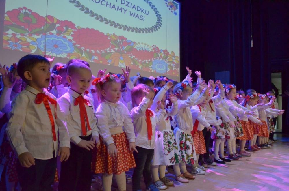 Przedszkolaki recytowały wiersze, śpiewały piosenki, a także zaprezentowały tańce ludowe takie jak : „Polka kłaniana”, „Grozik”, „Szot”, „Owczareczek”, „Równy” oraz inscenizację do piosenki „Maryna gotuj pierogi”. Na koniec uroczystości wnuczęta obdarowały dziadków upominkami.