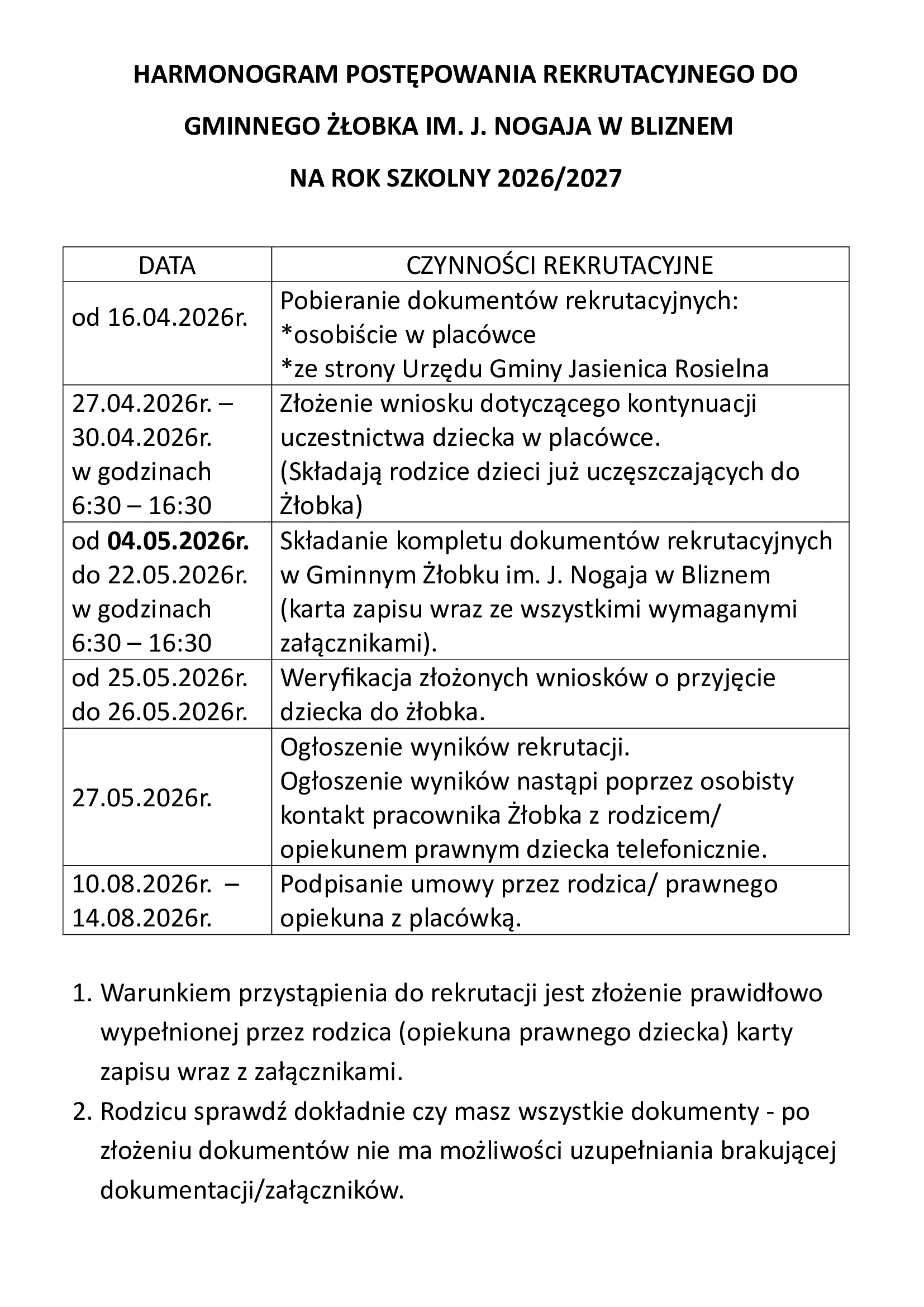 - REGULAMIN REKRUTACJI DZIECI DO GMINNEGO ŻŁOBKA IM. JÓZEFA NOGAJA W BLIZNEM NA ROK 2026/2027 Pobierz
