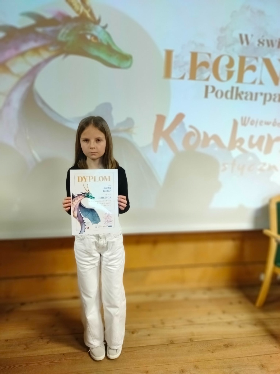 Z dumą informujemy, że laureatką konkursu została Julita Kielar uczennica Szkoły Podstawowej w Woli Jasienickiej, która zajęła II miejsce za zilustrowanie legendy o powstaniu nazwy miejscowości Blizne. W uroczystości rozdania nagród uczestniczył dyrektor szkoły Pan Marek Chęć.