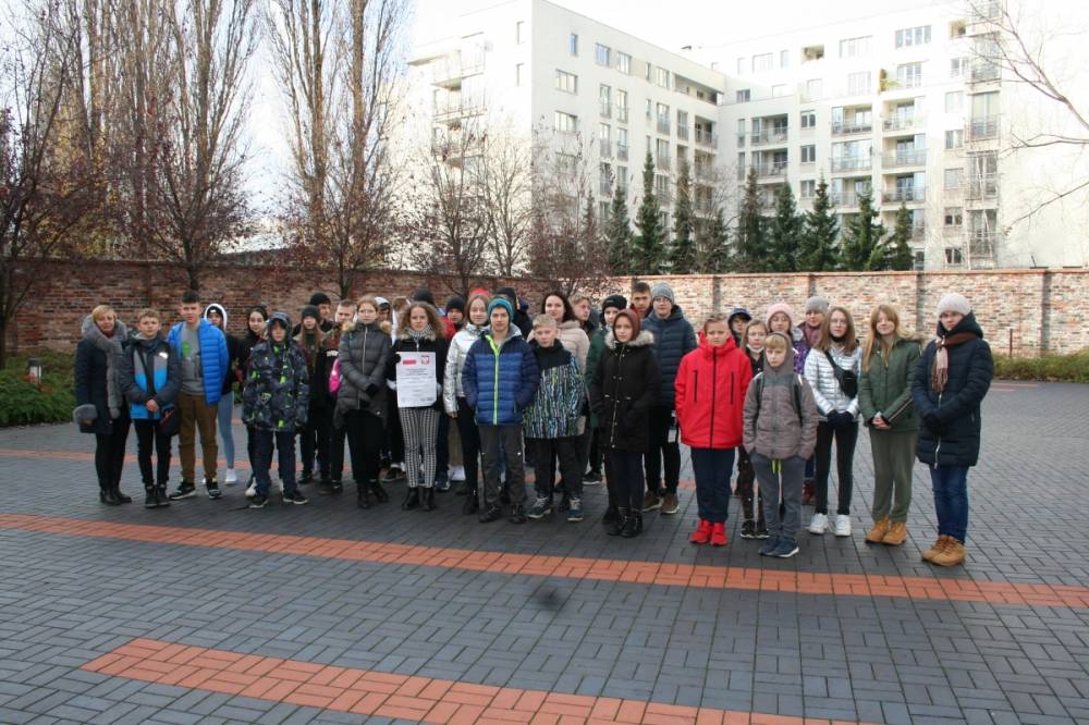 Kolejnym punktem w tym dniu był Cmentarz Powstańców Warszawy. Przed Pomnikiem „Polegli – Niepokonani” zapaliliśmy znicze. Cmentarz Powstańców Warszawy to miejsce pochówku największej liczby mieszkańców stolicy poległych i zamordowanych w czasie zrywu. Spoczywają tam szczątki 104 tys. osób, z czego 80 procent stanowią prochy cywilów.