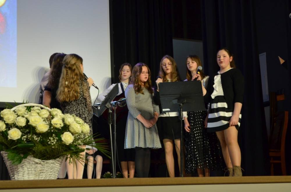 Wójt gminy Urszula Brzuszek w emocjonalnym wystąpieniu podziękowała autorce koncepcji spektaklu i montażu Małgorzacie Szewczyk nie tylko za zaangażowanie w przygotowanie i reżyserię wydarzenia, ale przede wszystkim za ukazanie ponadczasowego przesłania papieskiego.