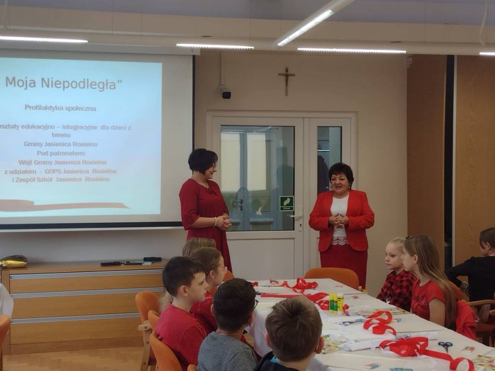 W pięknym geście współpracy i w niecodziennej atmosferze - dnia 8 listopada 2022 br. - w ramach profilaktyki społecznej - przy GOPS Jasienica Rosielna, odbyły się warsztaty edukacyjno-integracyjne dla dzieci z terenu naszej Gminy. Biel i czerwień to kolory, które w tym dniu zdecydowanie zdominowały przygotowania do 104 rocznicy odzyskania przez Polskę niepodległości.