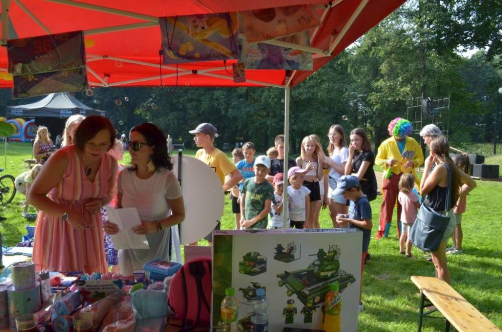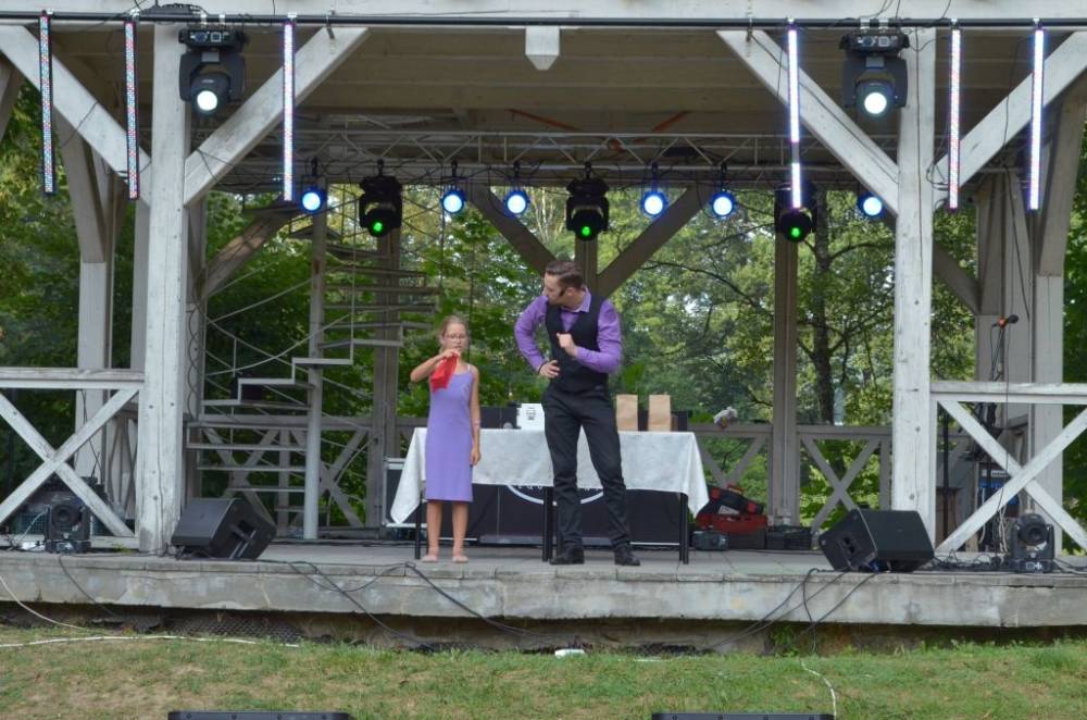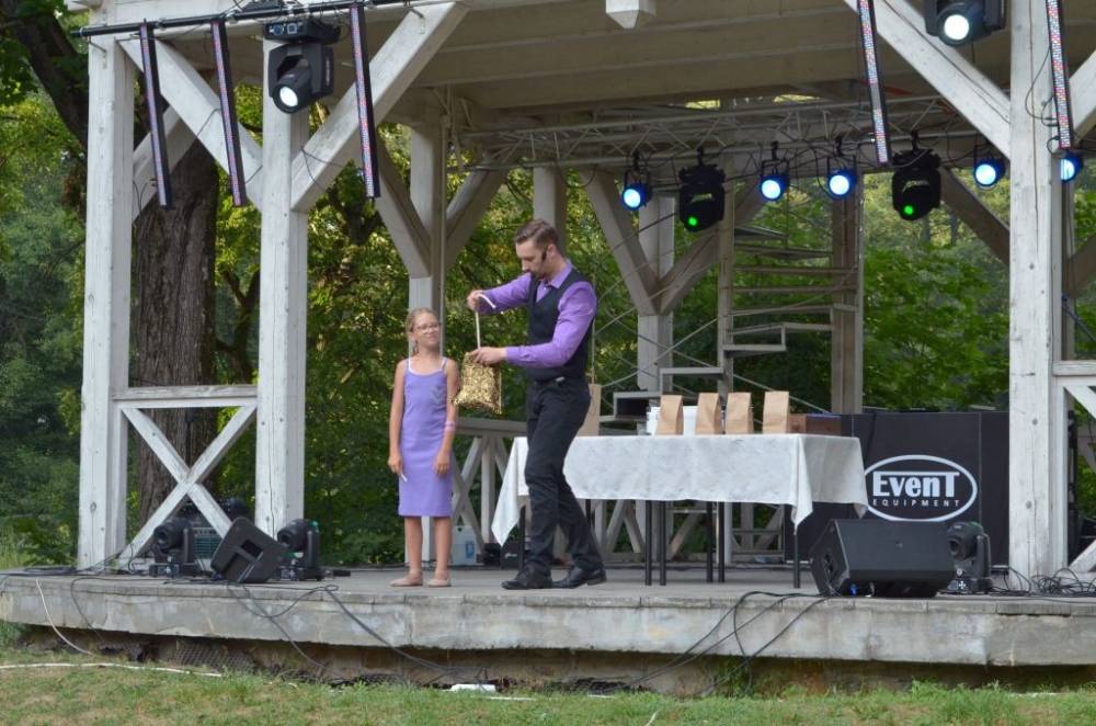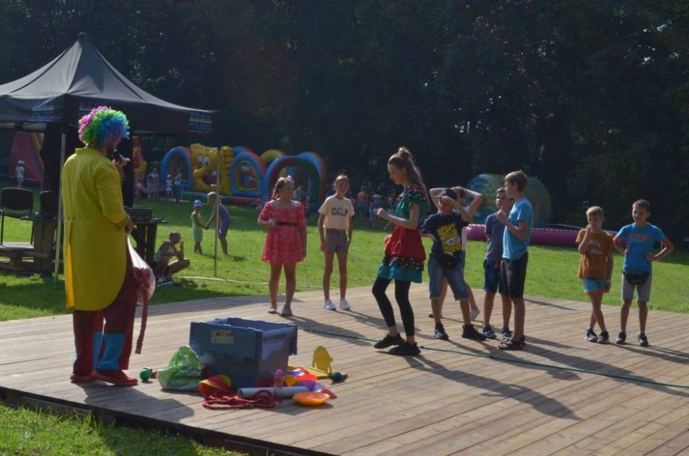 Słoneczne niedzielne popołudnie w parku gminnym upłynęło pod znakiem wspaniałej zabawy, uświetnionej występami zdolnych wokalistów akademii artystycznych pani Marty Kozak oraz Marioli Leń-Friedek, zabawą z klaunem oraz niesamowitym występem iluzjonisty Przemysława Wilka.