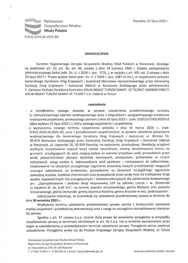 Państwowe Gospodarstwo Wodne Wody Polskie PODAJE DO PUBLICZNEJ WIADOMOŚCI