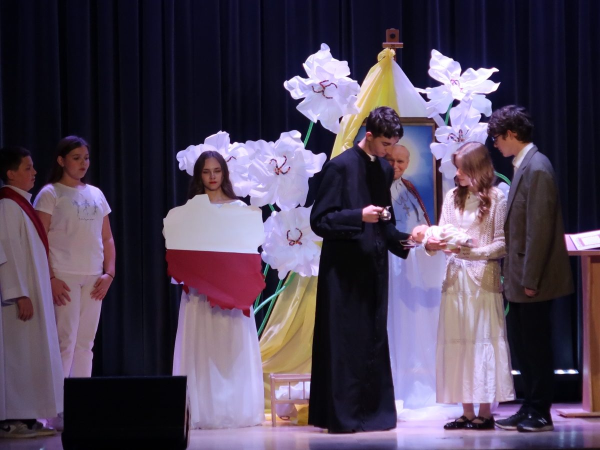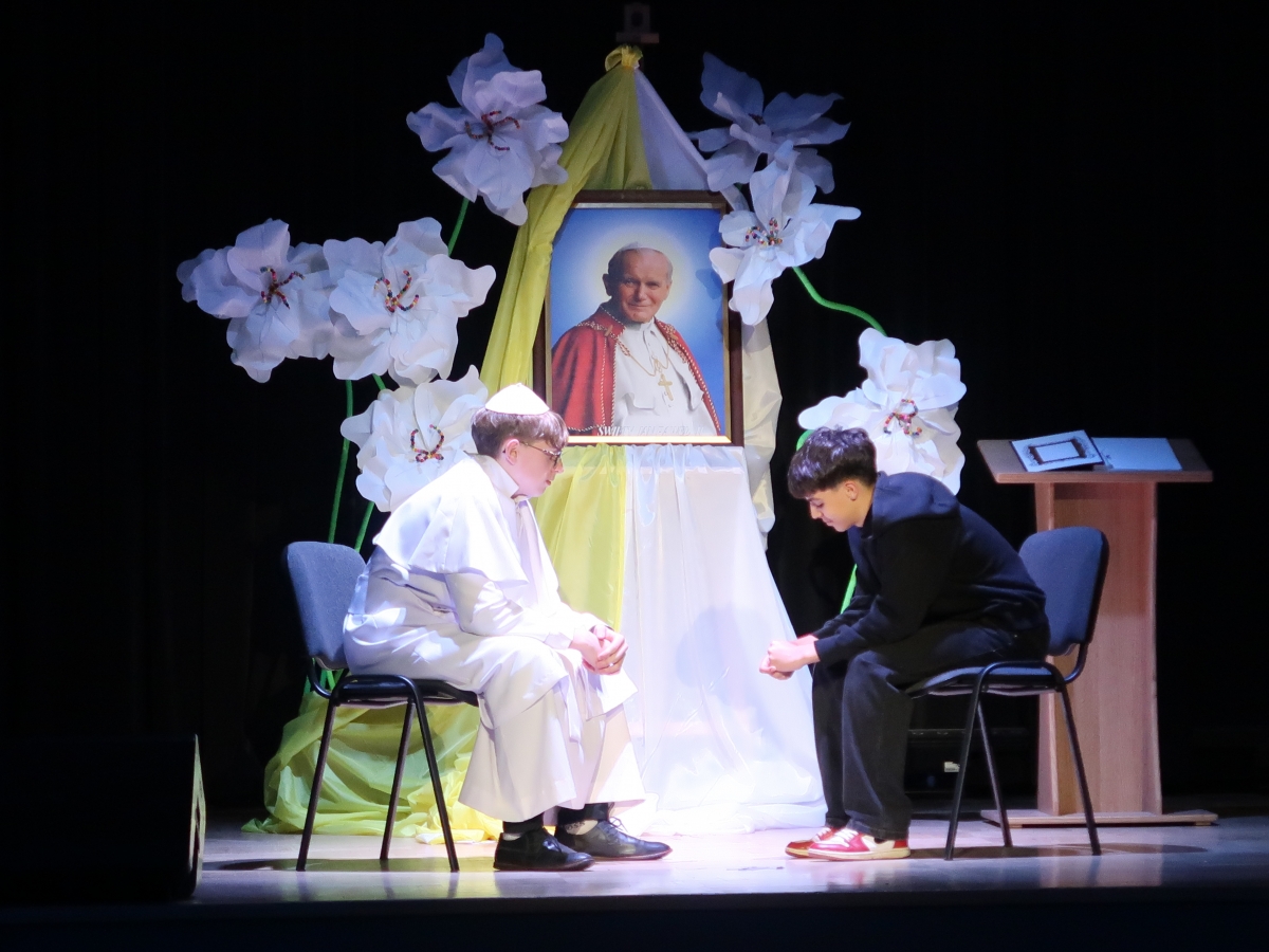 Uczniowie Szkoły Podstawowej w Jasienicy Rosielnej zaprezentowali program artystyczny nawiązujący do życia i nauczania Papieża Polaka. Poruszająca pantomima, podczas której przejmująca narracja towarzyszyła scenom przedstawiającym najważniejsze momenty z życia i pontyfikatu Świętego Jana Pawła II na długo pozostanie w sercach zgromadzonej na sali publiczności.