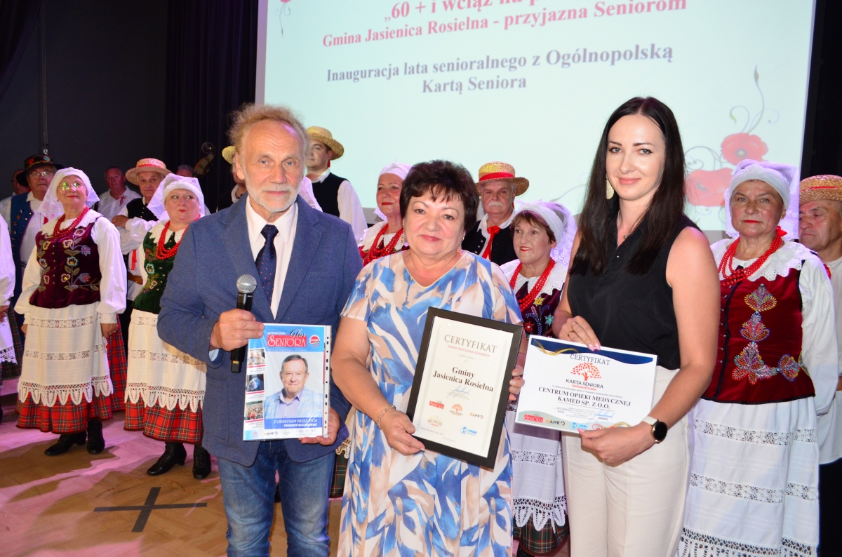 Uroczystą inauguracją w dniu 07.07.2025 w auli widowiskowej przy Urzędzie Gminy w Jasienicy Rosielnej, pod hasłem „ 60 + i wciąż na plus – Gmina Jasienica Rosielna przyjazna Seniorom”, podkreśliliśmy fakt przystąpienia naszej Gminy do Programu „ Gmina przyjazna Seniorom - Ogólnopolska Karta Seniora”, jak również podjęliśmy żywą dyskusje na temat walorów aktywności społecznej, fizycznej i kulturalnej w wieku senioralnym. Organizator spotkania, a mianowicie Gminny Ośrodek Pomocy Społecznej w Jasienicy Rosielnej, któremu przekazano do bezpośredniej realizacji zadanie związane z jego obsługą w tym kolportażem Kart Seniora - zadbał o to, aby spotkanie to było wyjątkowe i wartościowe nie tylko pod kątem przekazu najważniejszych informacji, ale także atrakcyjne pod względem widowiskowym. Panel dyskusyjny na temat idei, głównych założeń Programu jak również na temat szeroko pojętego bezpieczeństwa i znaczenia aktywności dla wieku senioralnego człowieka, poprowadził dr inż. Marek Pilch – przedstawiciel Stowarzyszenia „Manko” z siedzibą w Krakowie, natomiast całość spotkania koordynowała i moderowała dr Beata Jamrógiewicz z Gminnego Ośrodka Pomocy Społecznej w Jasienicy Rosielnej.