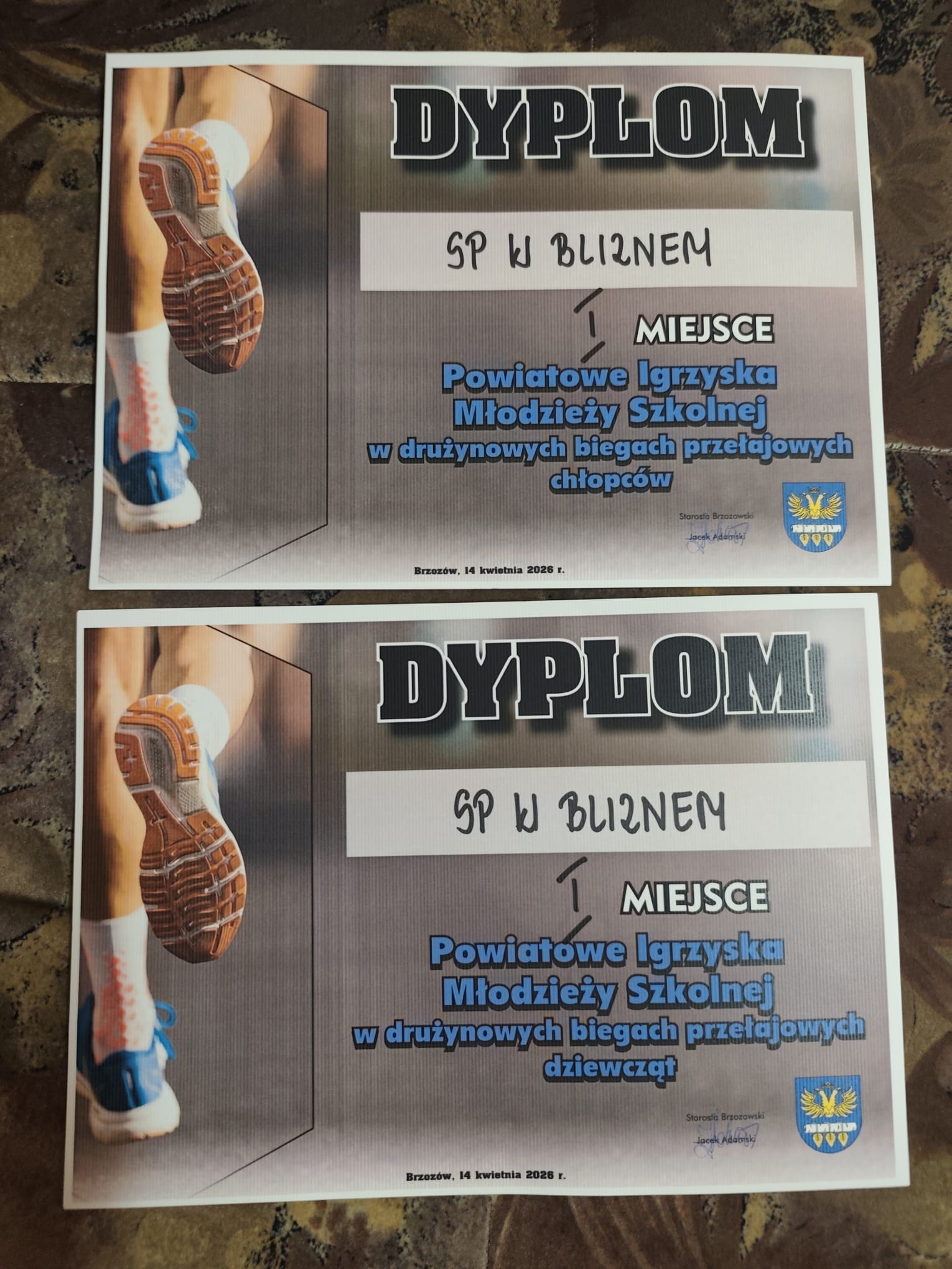 Szkoła Podstawowa w Bliznem po raz kolejny potwierdziła, że jeśli chodzi o biegi przełajowe, to w powiecie brzozowskim jest prawdziwą potęgą. Po zdobyciu kilka dni temu trzech tytułów Mistrzów Powiatu w drużynowych biegach przełajowych w kategorii dzieci ekipy tejże szkoły dorzuciły dwa następne. Tym razem zarówno dziewczęta, jak i chłopcy z Bliznego wygrali rywalizację w Powiatowych Igrzyskach Młodzieży Szkolnej, które 14 kwietnia odbyły się na stadionie MOSiR w Brzozowie.