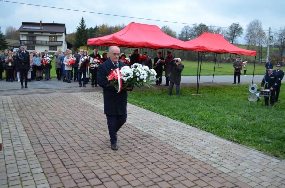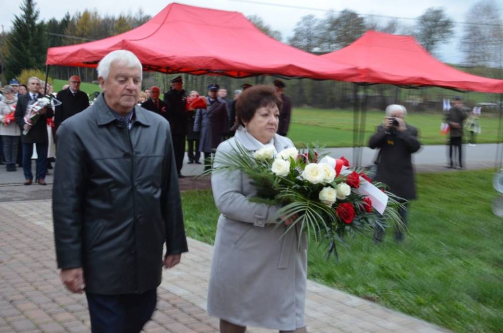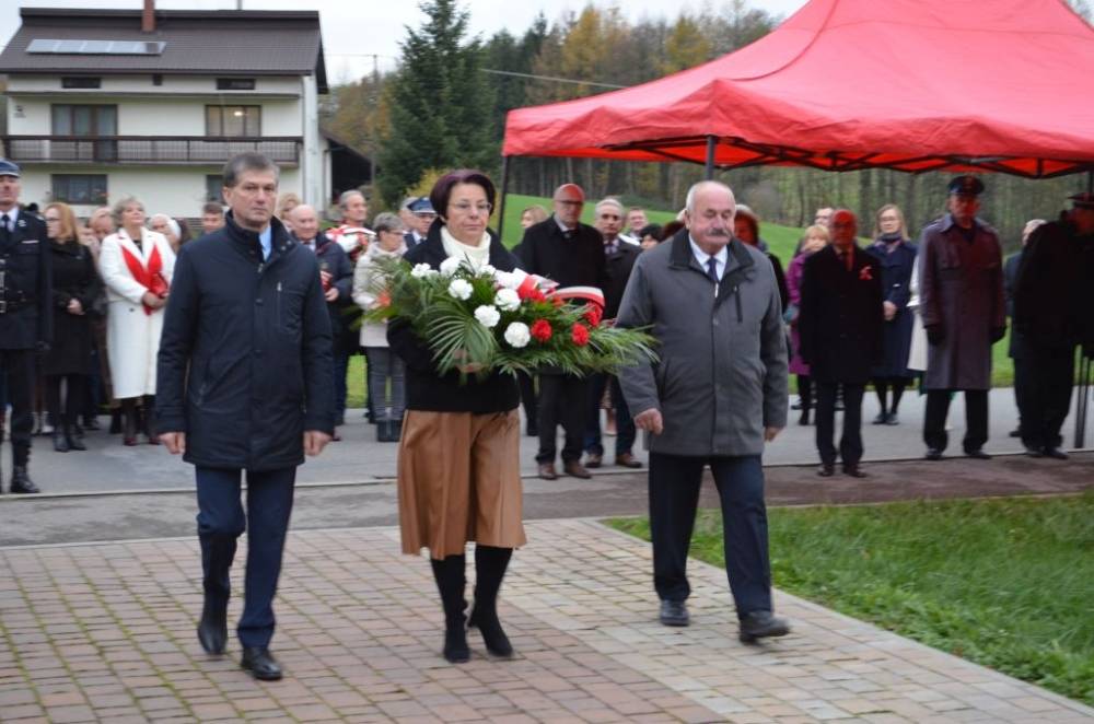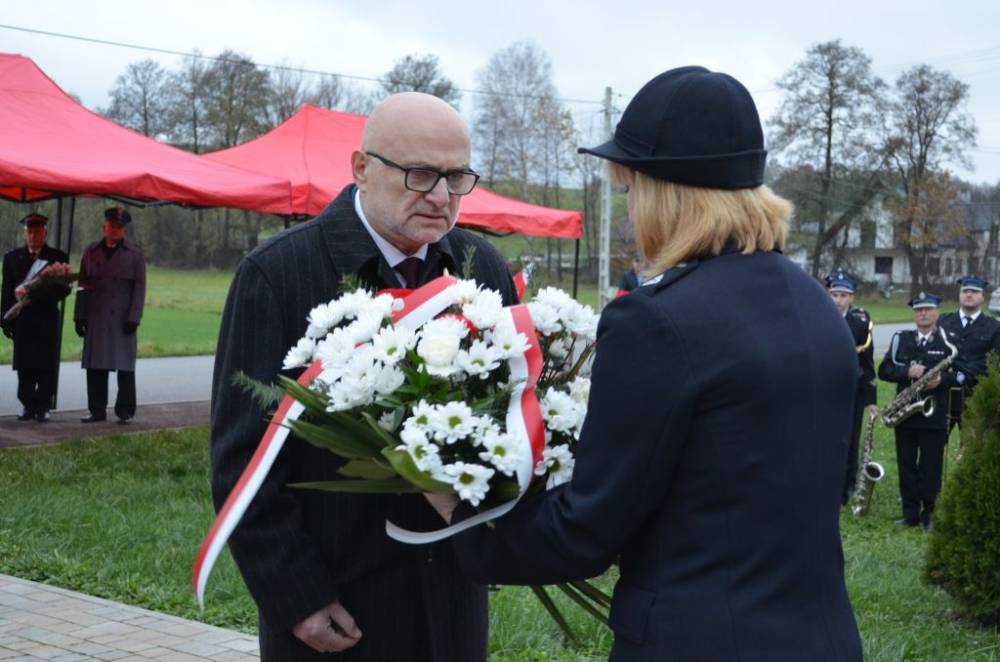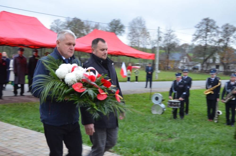 Słów o miłości Ojczyzny nie zabrakło również podczas drugiej części uroczystości. Uczestnicy przeszli bowiem ze świątyni do pomnika wystawionego w stulecie odzyskania niepodległości, prowadzeni przez orkiestrę dętą, poczty sztandarowe i pododdział honorowy pod dowództwem dh. Henryka Leśniaka. Tam byli świadkami podniesienia flagi państwowej, a także wysłuchali przemówienia wójta gminy Urszuli Brzuszek, która nie kryjąc podniosłych emocji, wskazała na potrzebę pełnej roztropności i zaangażowania postawy służby Ojczyźnie i narodowi szczególnie w obecnej rzeczywistości. Podobną refleksją podzielił się z zebranymi poseł Adam Śnieżek oraz nieobecny poseł Piotr Uruski, którego okolicznościowe pismo zostało zacytowane. Zgodnie z tradycją przy pomniku kwiaty złożyły delegacje reprezentujące lokalnych parlamentarzystów i samorządowców, a także służby mundurowe, placówki oświaty, kultury, pomocy społecznej, inne jednostki gminne, organizacje pozarządowe oraz potomkowie miejscowych bohaterów.