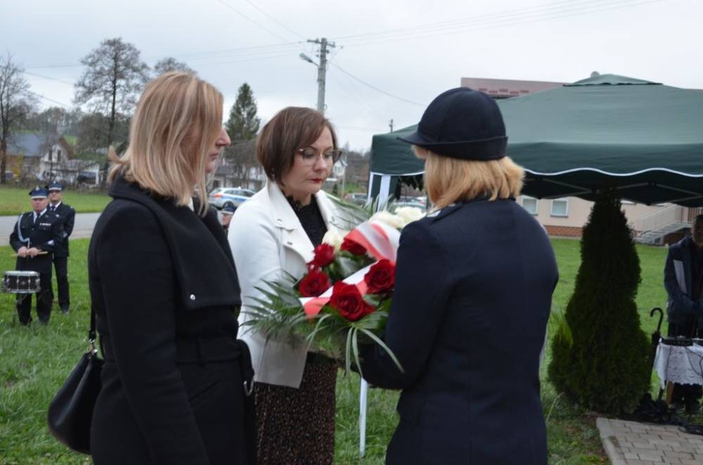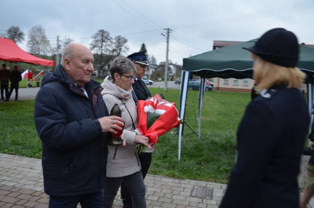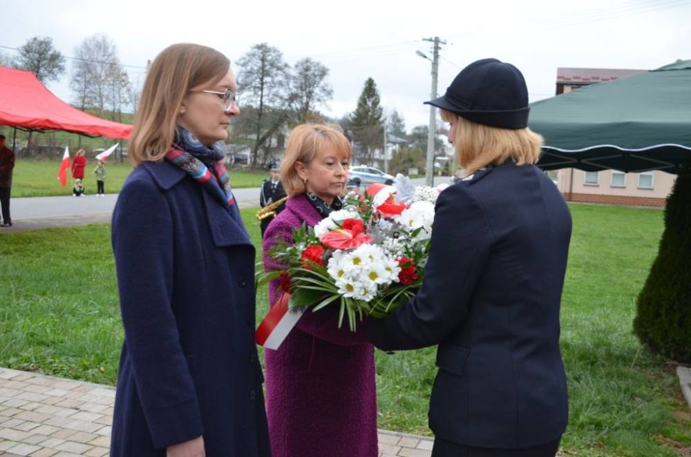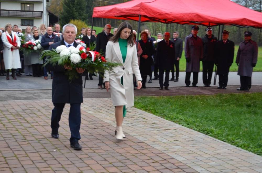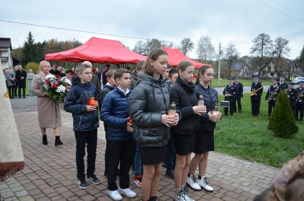 Słów o miłości Ojczyzny nie zabrakło również podczas drugiej części uroczystości. Uczestnicy przeszli bowiem ze świątyni do pomnika wystawionego w stulecie odzyskania niepodległości, prowadzeni przez orkiestrę dętą, poczty sztandarowe i pododdział honorowy pod dowództwem dh. Henryka Leśniaka. Tam byli świadkami podniesienia flagi państwowej, a także wysłuchali przemówienia wójta gminy Urszuli Brzuszek, która nie kryjąc podniosłych emocji, wskazała na potrzebę pełnej roztropności i zaangażowania postawy służby Ojczyźnie i narodowi szczególnie w obecnej rzeczywistości. Podobną refleksją podzielił się z zebranymi poseł Adam Śnieżek oraz nieobecny poseł Piotr Uruski, którego okolicznościowe pismo zostało zacytowane. Zgodnie z tradycją przy pomniku kwiaty złożyły delegacje reprezentujące lokalnych parlamentarzystów i samorządowców, a także służby mundurowe, placówki oświaty, kultury, pomocy społecznej, inne jednostki gminne, organizacje pozarządowe oraz potomkowie miejscowych bohaterów.