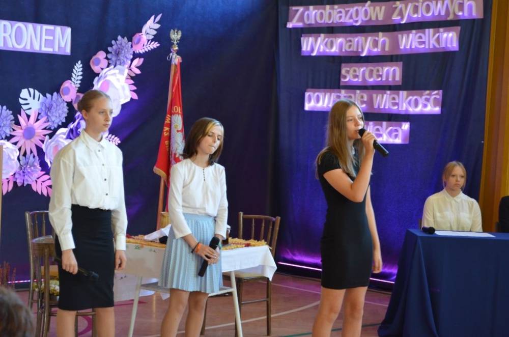 Uczestnicy uroczystości wraz z pocztami sztandarowymi czterech szkół z terenu gminy bezpośrednio po zakończeniu mszy przemaszerowali do szkoły. Tam wójt gminy Urszula Brzuszek wraz z dyrektorem szkoły Markiem Chęciem dokonała odsłonięcia pamiątkowej tablicy, po czym zgromadzeni mieli okazję obejrzenia ciekawego widowiska w wykonaniu uczniów Szkoły Podstawowej w Woli Jasienickiej. Spektakl w formie lokalnego programu informacyjnego bardzo spodobał się widzom.