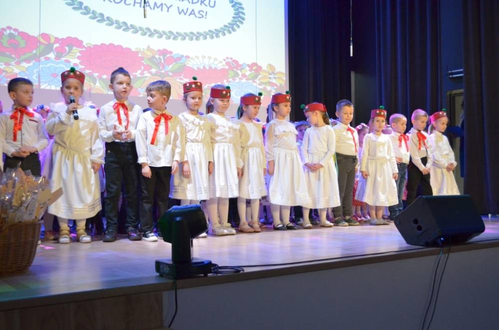 Występy dzieci wzbogacono o piękne tradycyjne stroje ludowe, które dopełniły całości prezentacji. Swój udział miały również mamy, które przygotowały dla babć i dziadków słodki poczęstunek.