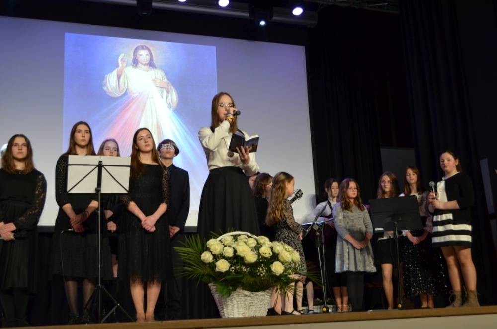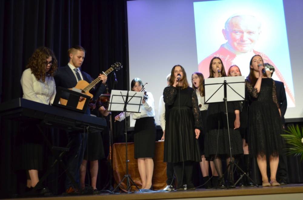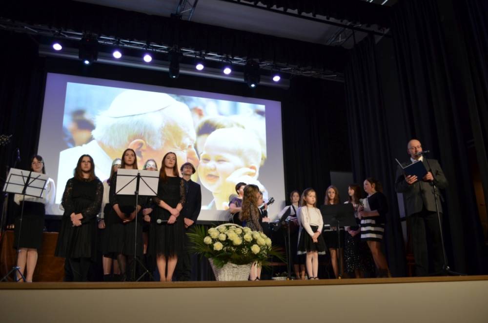 Wójt gminy Urszula Brzuszek w emocjonalnym wystąpieniu podziękowała autorce koncepcji spektaklu i montażu Małgorzacie Szewczyk nie tylko za zaangażowanie w przygotowanie i reżyserię wydarzenia, ale przede wszystkim za ukazanie ponadczasowego przesłania papieskiego.
