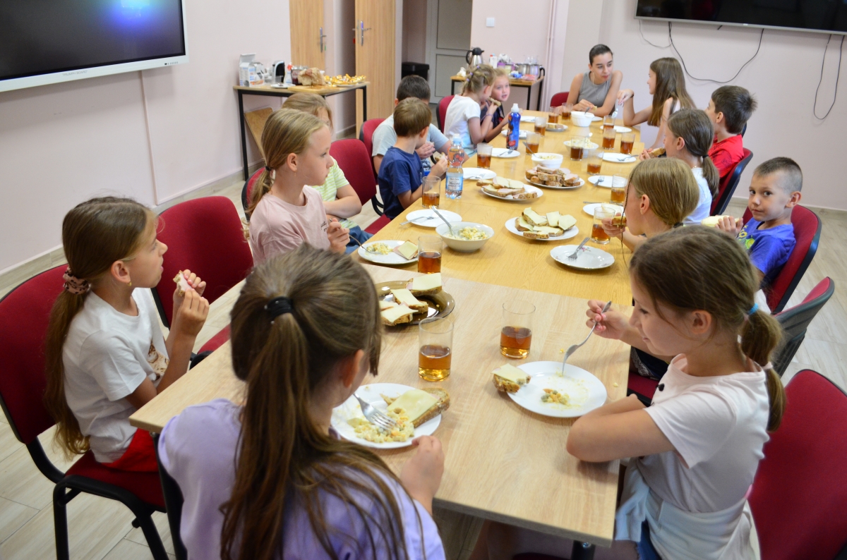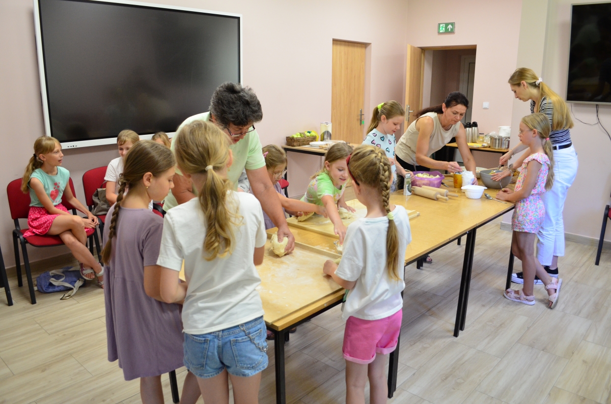 Popularnością cieszyły się warsztaty kulinarne, w których dzieci zamieniły centrum kultury między innymi w grecką tawernę, gdzie można było posmakować pysznej sałatki greckiej, witaminowej sałatki owocowej, pasty kanapkowej, tradycyjnej sałatki „bałagan”, babeczek z jagodami oraz pierogów ruskich.
