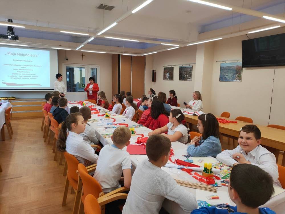 W pięknym geście współpracy i w niecodziennej atmosferze - dnia 8 listopada 2022 br. - w ramach profilaktyki społecznej - przy GOPS Jasienica Rosielna, odbyły się warsztaty edukacyjno-integracyjne dla dzieci z terenu naszej Gminy. Biel i czerwień to kolory, które w tym dniu zdecydowanie zdominowały przygotowania do 104 rocznicy odzyskania przez Polskę niepodległości.