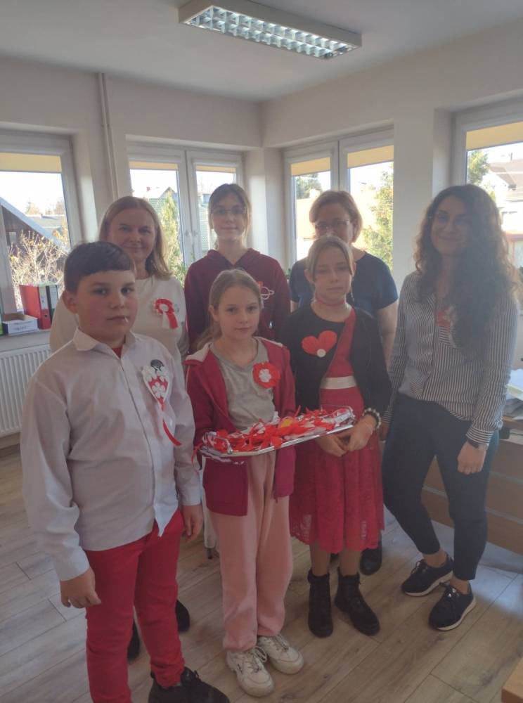 Było zacnie, z szacunkiem, aktywnie i w pełnej radości, a to za sprawą dzieci z klas piątych ZS w Jasienicy Rosielnej - uczestników warsztatów. Warto podkreślić, że kotyliony - które młodzież wykonała - trafiły do wszystkich referatów UG Jasienica Rosielna, w tym podmiotu Policji, GOPS. Dla dzieci - za wspólnie spędzony czas, kreatywność, uśmiech - słodkości i upominki...