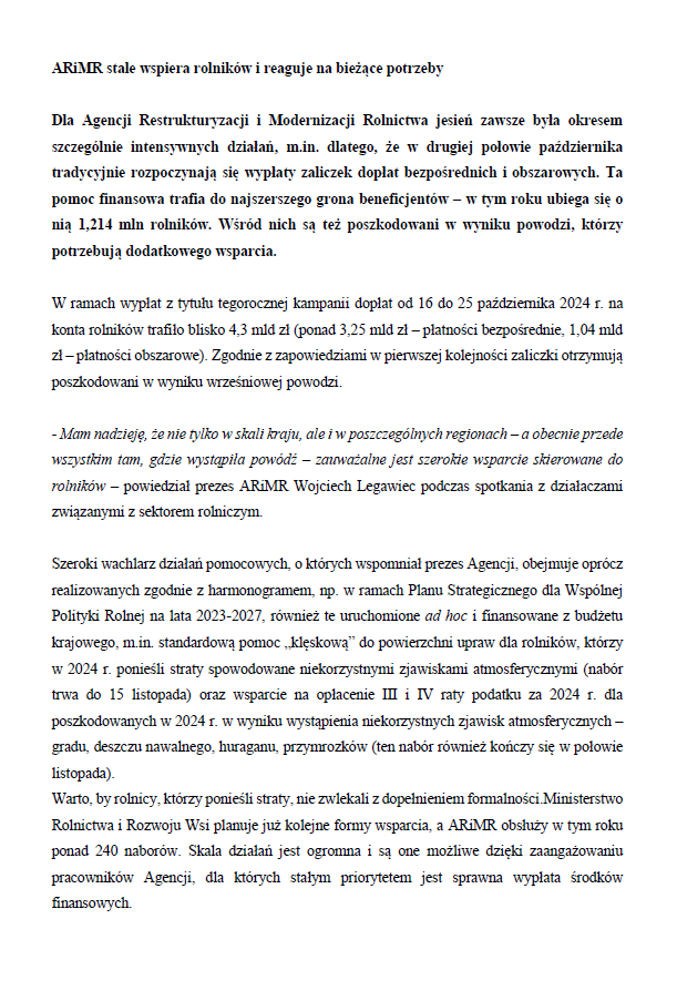KOMUNIKAT PRASOWY DO ODZIAŁÓW BEZ POWODZI