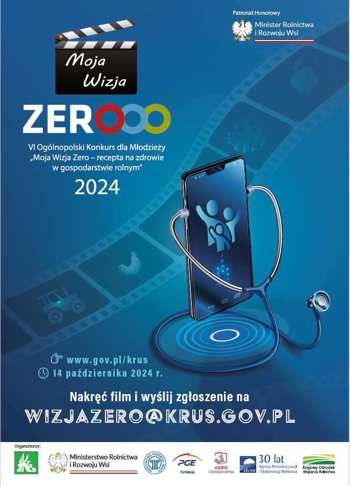 Organizatorem VI Ogólnopolskiego Konkursu dla Młodzieży „Moja Wizja Zero – recepta na zdrowie w gospodarstwie rolnym” jest Kasa Rolniczego Ubezpieczenia Społecznego (KRUS), a patronem honorowym – Minister Rolnictwa i Rozwoju Wsi.