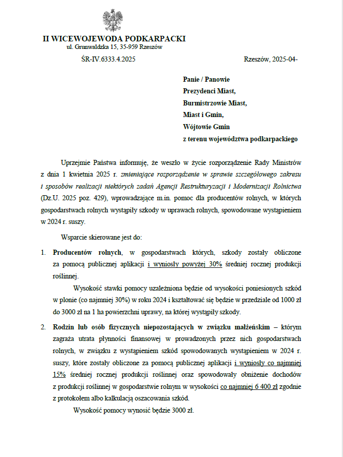 INFORMACJA Rady Ministrów w sprawie szczegółowego zakresu i sposobów realizacji niektórych zadań Agencji Restrukturyzacji i Modernizacji Rolnictwa