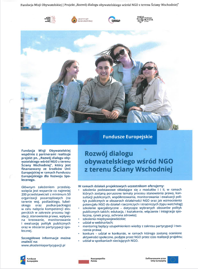 Fundacja Misji Obywatelskiej Projekt " Rozwoju dialogu obywatelskiego wśrod NGO z terenu Ściany Wschodniej"